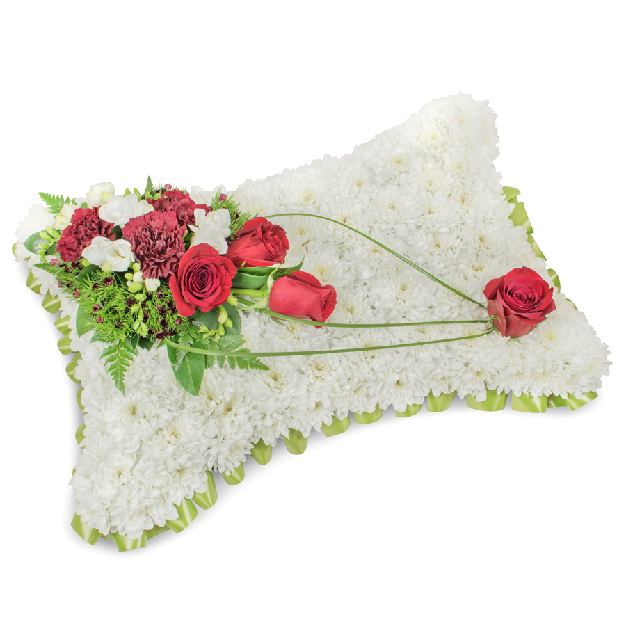 Offer a distinctive expression of sympathy with our meticulously arranged bouquet, crafted to deliver comfort and elegance. This refined arrangement brings together the soft glow of white chrysanthemums, the passionate allure of red roses, the delicate charm of white freesias, the rich depth of dark red carnations, the subtle touch of dianthus, and the natural beauty of bear grass. Every flower is hand-selected to maximize freshness and color impact.